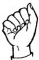 На ћирилици написано МОМИРА МАРЕЉ састоји се из 11 слова [?]. Исписано ћириличном једноручном азбуком за глувонеме: